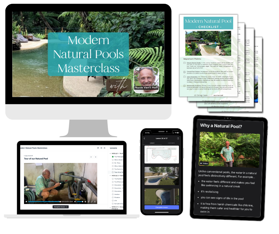 This course was born from the VIRAL YOUTUBE Interview with Norm that had 700,000+ Views & over 200+ comments of people asking questions on how they can build their own Modern Natural Pool without Mud - essentially a pool paradise in their own backyard!